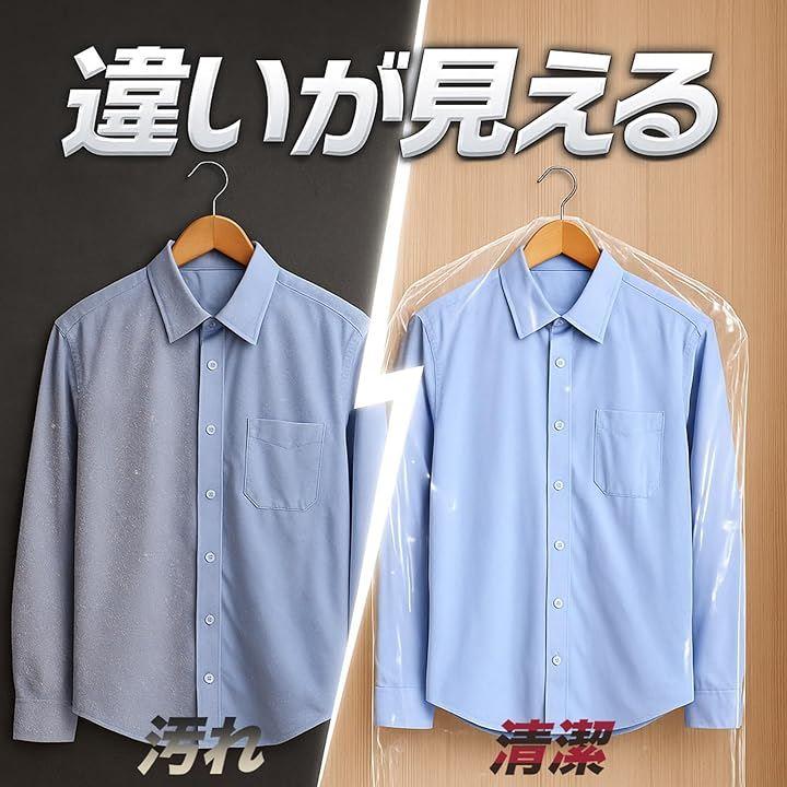 ハンガーにかけたまま被せるだけで、ホコリや汚れの付着を防ぎ、衣替えや長期保管も安心です。