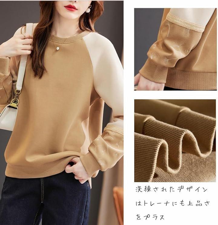 袖 刺繍 トレーナー レディース パーカー プルオーバー 長袖 Tシャツ トップス 春服