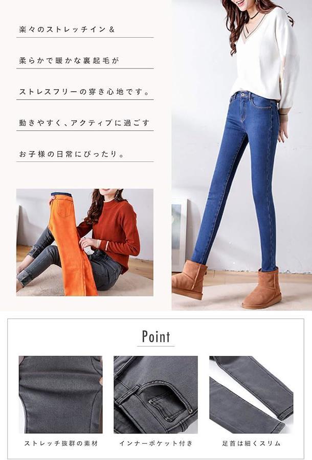 (2)「伸縮性+裏ボア+厚手の生地+保温性」と機能性も充実。