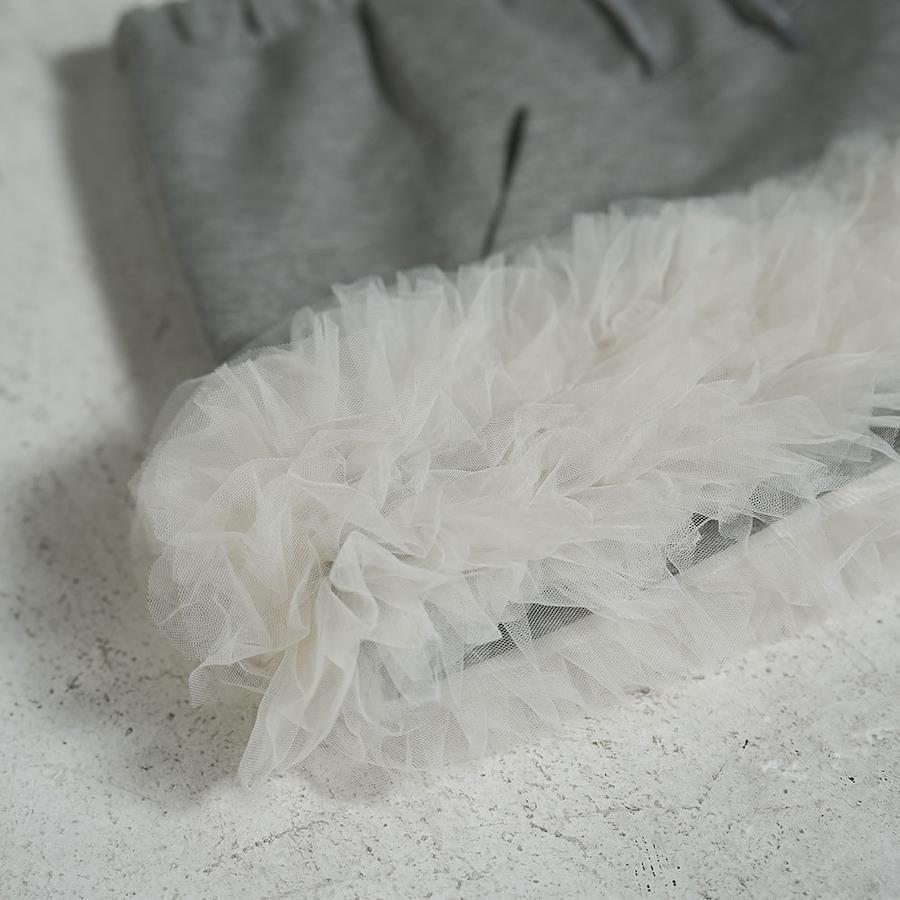 スポーツ要素のスウェット素材と組み合わせることでガーリーカジュアルにも◎