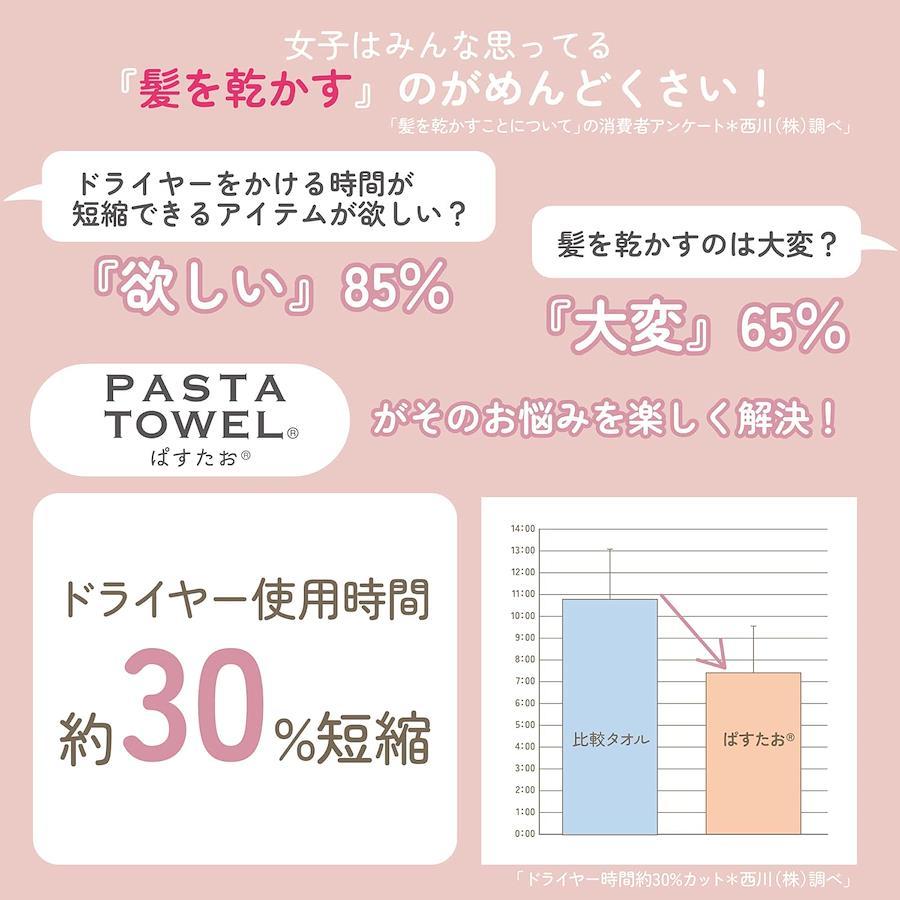 ◆髪を乾かすための専用タオル「ぱすたお」。乾きにくい髪の毛の内側に入り込み、ヘアドライ時の時間を約30%短縮!