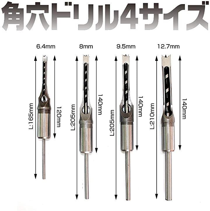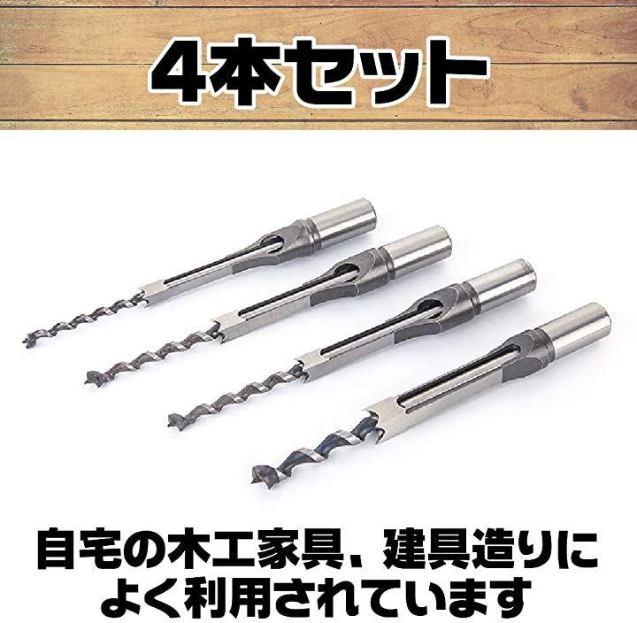 ・DIYの幅が広がる:趣味の木工や家具、建具製作に便利なホゾ穴(四角穴、長方形の穴))あけに便利なドリル6.4・8・9.5・12.7mmが各1本、4本セットになっております。