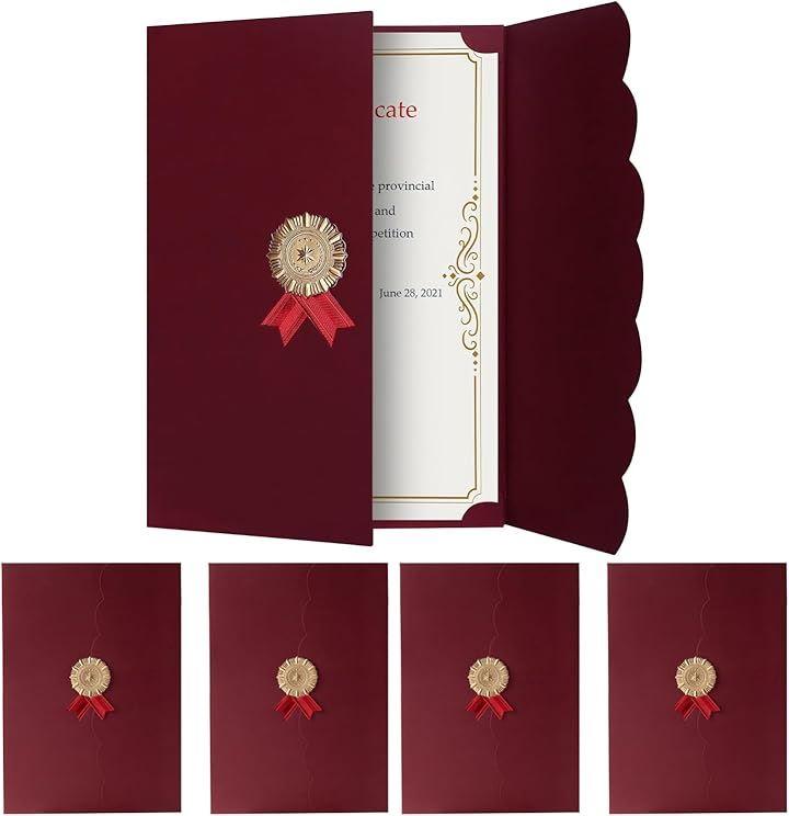 デザイン性: 金のエンブレムと赤いリボンが付いた高級感のある証書ファイル。