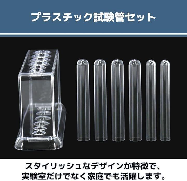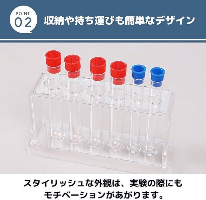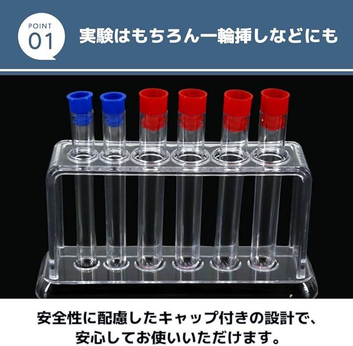 さらに、洗練されたデザインのプラスチック製試験管立てはキャップ付きで安全性が高く、おしゃれなインテリアとしても映えるため、いろんな用途で活躍します。