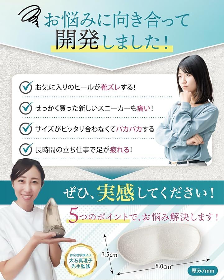 「毎日使いたくなる心地よさ」立ち仕事で足が疲れやすい方、パンプスやローファーで靴擦れする方、高齢のご家族の転倒予防を考えている方、初めての方でも安心して使えます。