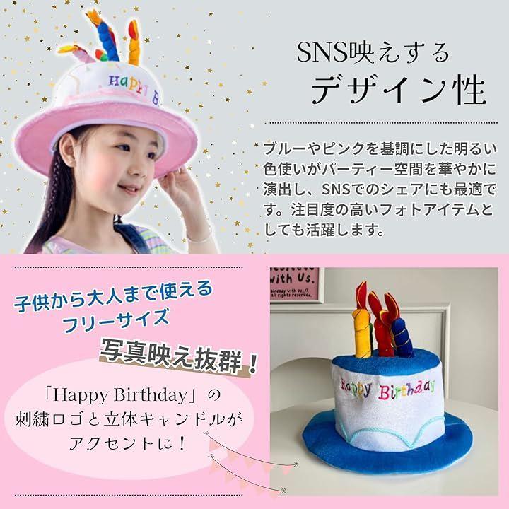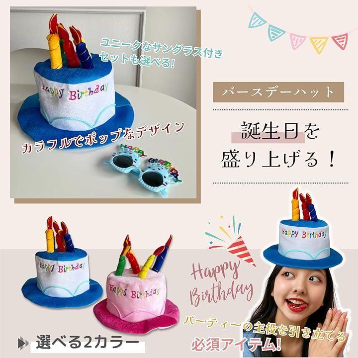 「誕生日を盛り上げるバースデーハット」 カラフルでポップなデザインが目を引くバースデーハットは、誕生日パーティーの主役を引き立てる必須アイテム。