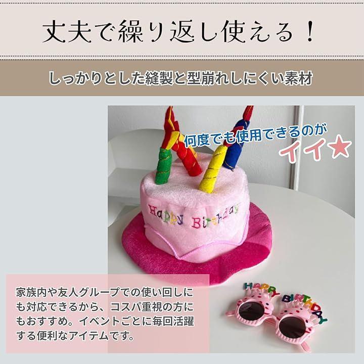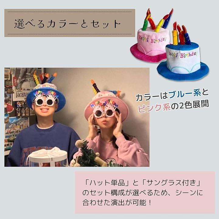 帽子のみのタイプに加え、ユニークなサングラス付きセットも選べるため、パーティーコーデに一体感を持たせられます。