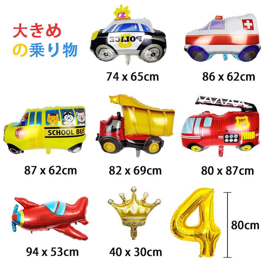 【セット内容】①8個のホイルバルーン:【大きめ】トラック×1、【大きめ】飛行機×1、【大きめ】スクールバス×1、【大きめ】パトカー×1、【大きめ】消防車×1、【大きめ】救急車×1、【大きめ】数字バルーン×1、王冠×1 ②車ステッカー(ランダム 2個) ③ 1セットお誕生日おめでとうバナー ④説明書(日本語) ⑤小道具キット(リボンひも) ⑥三角帽子×1 【高品質の車風船】私たちの車風船は、耐久性のあるアルミ箔とで作られています。環境に優しい、耐久性と非毒性、爆発するのは容易ではなく、長寿命を持っています、彼らは子供のために使用することは安全です。自信を持ってご利用いただけます、パーティが終わった後で直接子供のおもちゃとしても使えます。 【再利用可能な材料】バナーは高品質のカードストック、頑丈で再利用可能で作られています。ホイルバルーンは繰り返し使用することができ、アルミニウム材料は光を反射し、バルーンをより美しくし、あなたのパーティーに完璧なディスプレイを提供します。 【適用の場合】風船セットは誕生日パーティー、子供パーティーなどに適用されます。このでっかく、可愛い自動車形状の風船を見て子供さんが興味を湧き出すでしょう、これは子供さんへの最高なギフトです。この交通機関をテーマとするパーティーに子供さんがきっと深い印象を残すと信じております。 【注意事項】品質チェックを行っていますが、風船は大量生産のため、ごく稀にエラーが生じることがあります。お客様には、風船を受け取り次第すぐに確認していただくことをお勧めします。使用前の4日間にご連絡いただければ、新しいセットを速やかにお送りし、お祝いに間に合わせます。