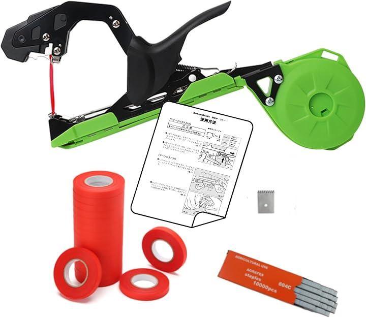 ぶどうの新梢誘引、きゅうりのつる誘引などの上向き 作業に最適。テープを結束機に設置できると、使う時が簡単に使える。