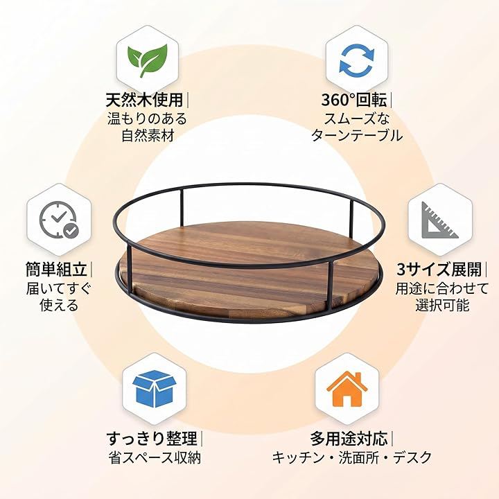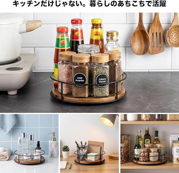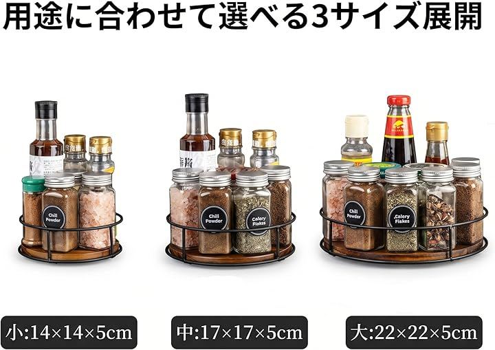 「商品説明」360度回転可能な木製調味料ラック。