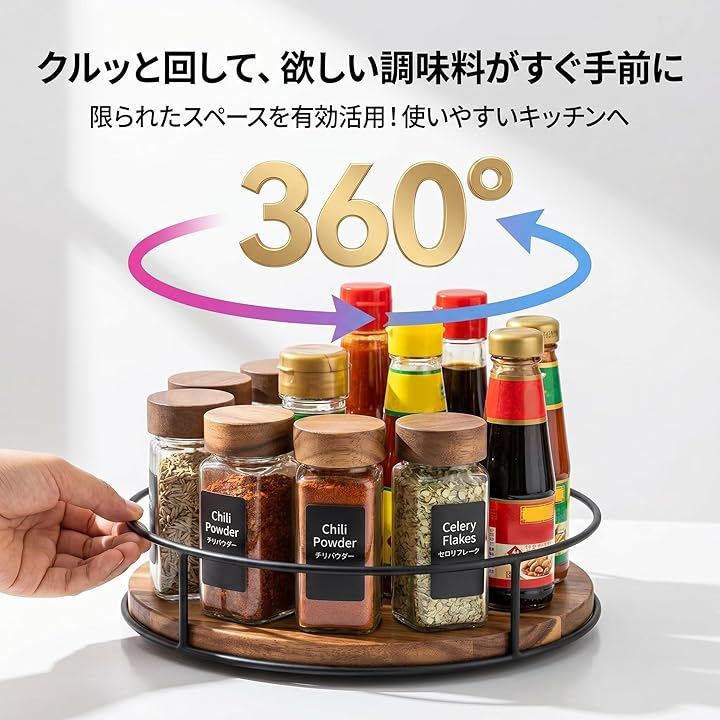 「360°回転で時短料理」クルッと回すだけで欲しい調味料がすぐ手元に。