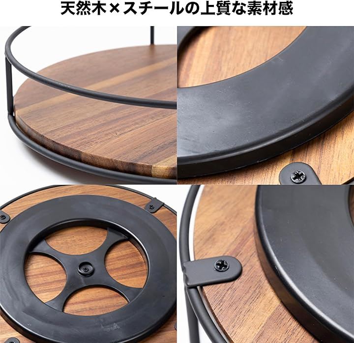 素材:天板=天然木、フレーム=スチール、回転台=樹脂。