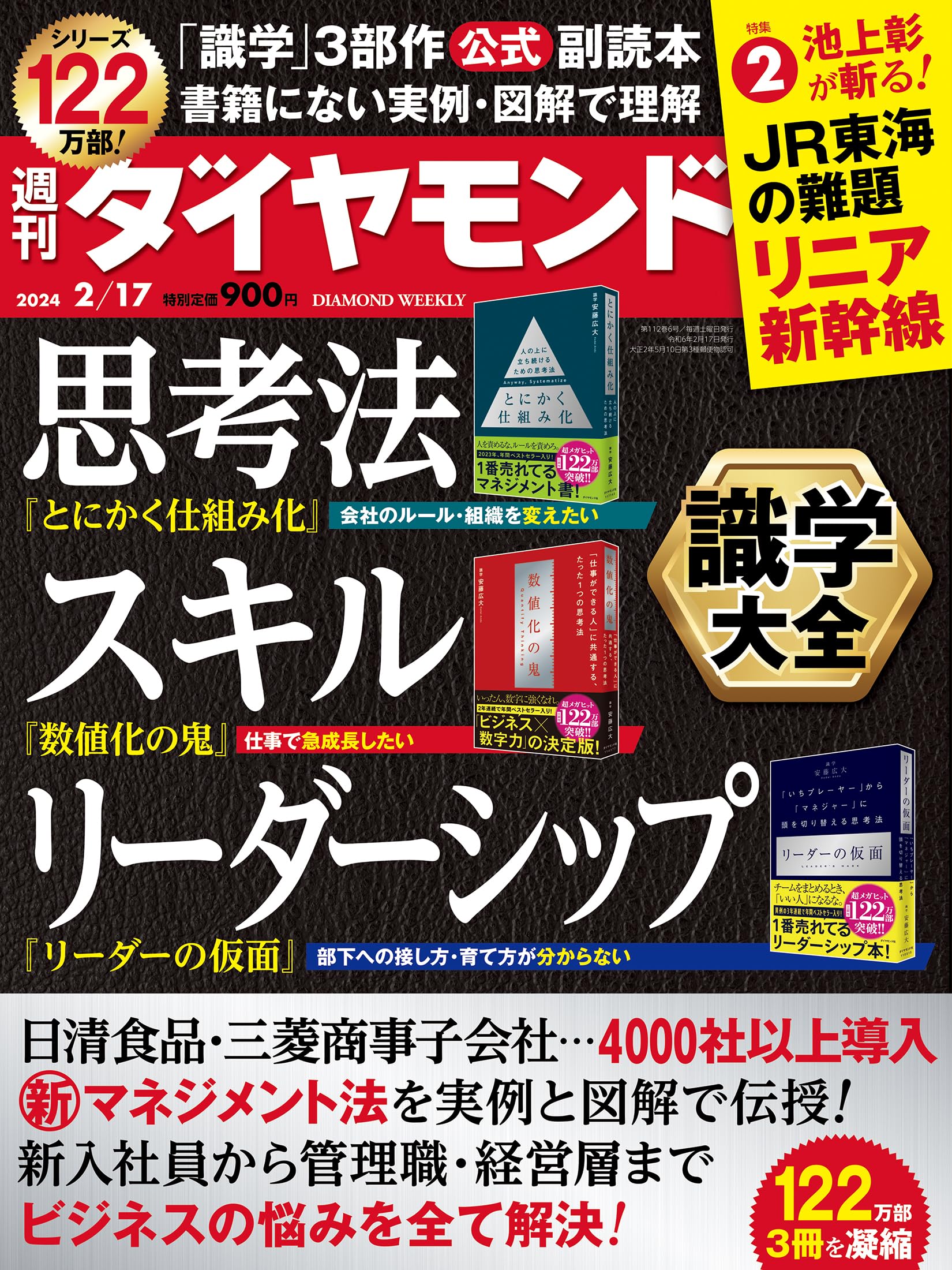 【特集】識学大全思考法/スキル/リーダーシップ「Prologue」大企業からスポーツ界まで! 話題の識学とは?(Interview)牧野正幸●ワークスアプリケーションズ創業者/パトスロゴスCEO「Part 1」部下ができた人のために リーダーの仮面感情を隠す「仮面」をかぶれ リーダー必須の5ポイント暗黙の了解は失敗を生む 明瞭な「ルール」を定めようピラミッド型組織の利点 自らの「位置」を自覚せよ本当の「利益」がなければ部下はついてこないと心得よリーダーが管理すべきは「プロセス」ではなく「結果」リーダーの醍醐味とは部下の「成長」にあり人手不足の地方企業で社員の離職を大幅減に社長参加の飲み会廃止で前年割れ続きの売上が回復「Part 2」急成長して結果を出したい 数値化の鬼「数字」を追いかけずして成長できる人はいない!いつ、いかなるときもいったん数字で考えよ「仕事ができる人」に共通する4つの数値化とは?マネジメント編 チームを強くする評価制度の数値化とは「Part 3」会社のルール・組織を変えたい とにかく仕組み化人の上に立ちたいならば歯車として生きる覚悟を持てなぜ「仕組み化」なのか 脱カリスマが理想の組織像人は他人と比較する生き物 その前提で「仕組み化」せよ仕組み化はあくまで手段 「企業理念」なしでは迷走する会社と他のコミュニティは「まぜるな危険」と心得よ共通言語で「ずれ」を修正 三菱商事エネで起きた変化「Epilogue」(Interview)安藤広大●識学代表取締役社長