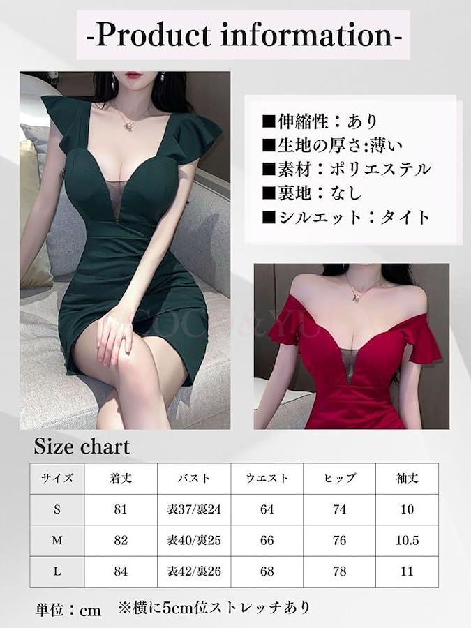胸元の黒いシースルーがセクシーだし、袖部分をオフショルダーにしても可愛くて、ボディーラインもタイトでスタイル良く見えました。チャックがなくてもスルスルと着られてこれも良かったです。