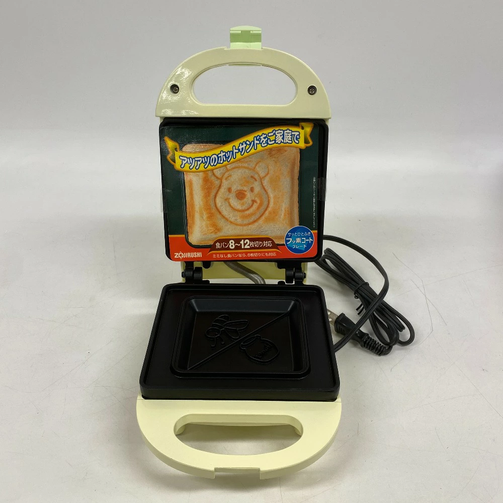 商品説明 | 表面にはプーさんが、裏面にはミツバチの焼き目がつきます。 ボリューム自由、食パン8~12枚切り対応(ミミなし食パンは6枚切りから対応)。 お手入れ簡単「フッ素加工プレート」 立ててしまえる「スタンド収納」。 |