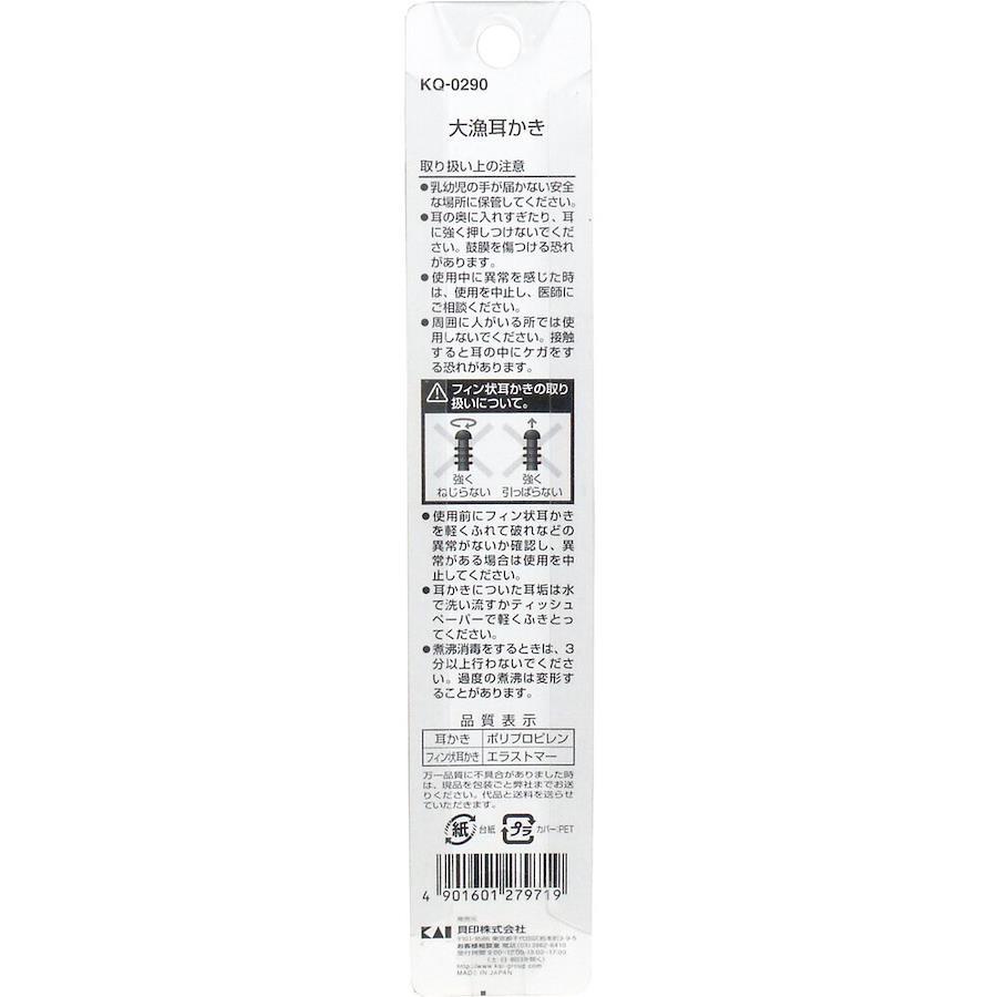 【注意】・乳幼児の手の届かない安全な場所に保管してください。・耳の奥に入れすぎたり、耳に強く押し付けないでください。鼓膜を傷付ける恐れがあります。・使用中に異常を感じた時は使用を中止し、医師にご相談ください。・周囲に人がいるところでは使用しないでください。接触すると耳の中をケガする恐れがあります。<フィン状耳かきの取扱いについて>・強くねじらないでください。・強く引っ張らないでください。・使用前にフィン状耳かきに軽く触れて破れなどの異常がないかを確認し、異常がある場合は使用を中止してください。・耳かきに付いた耳垢は水で洗い流すか、ティッシュペーパーで軽く拭き取ってください。・煮沸消毒をする場合は3分以上行わないでください。過度の煮沸は変形することがあります。