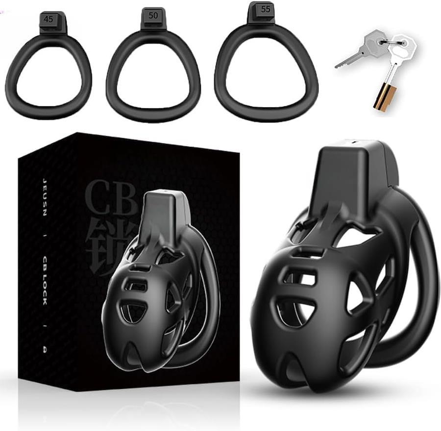 貞操具 貞操ロック 貞操帯 男性用 コックケージ 3つの貞操リング付き 錠付貞操装置コックABS材質貞操ケージ 拘束具 SMプレイ ペニス拘束具 寸法調節可能 鍵付き アダルトグッズ 大人のおもち (M)
