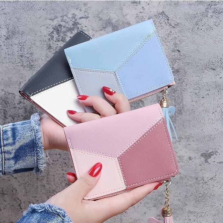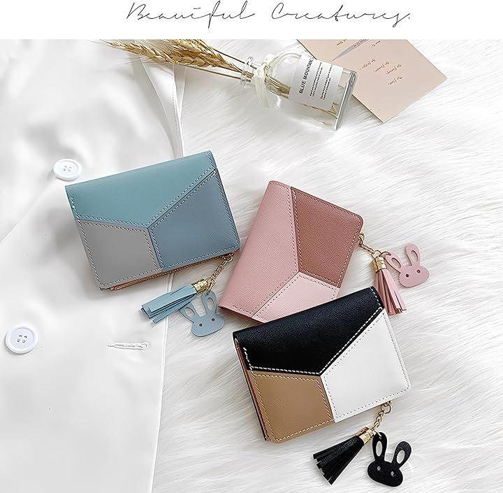 おしゃれで機能的なパステルカラーの配色が目を引く、コンパクトな二つ折りミニ財布