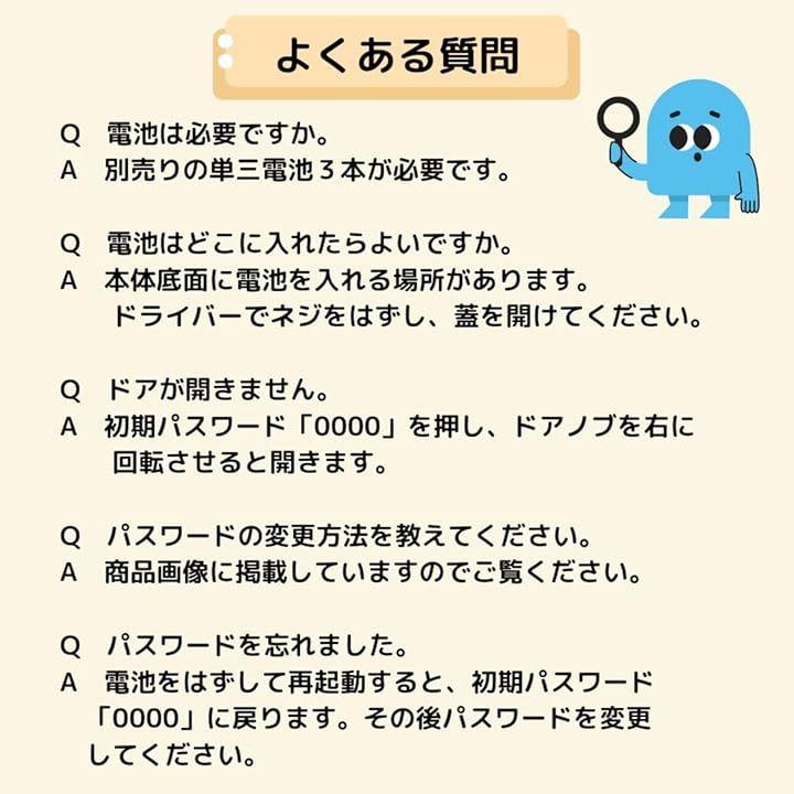 (4)パスワードを忘れてしまった場合は、電池を外して再起動することで工場出荷時の「0000」に戻ります。