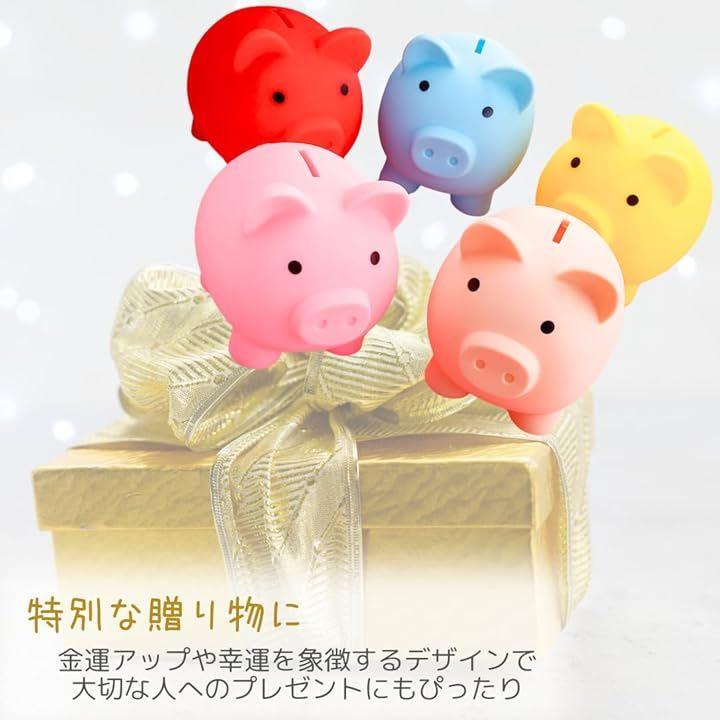 「幸せを呼ぶカラフルな豚さん貯金箱」愛らしいデザインとビビットなカラーがお部屋を明るく彩ります。