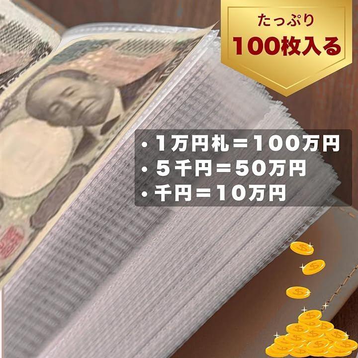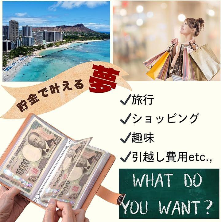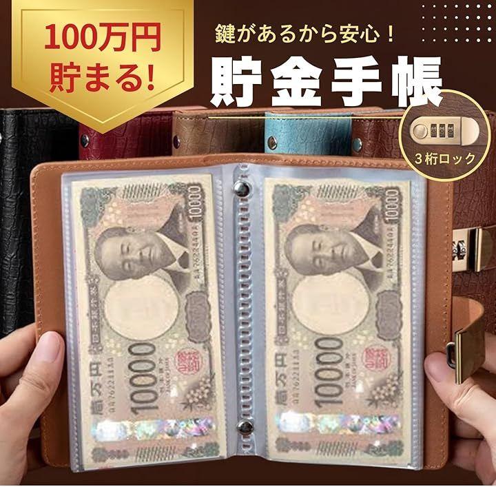 「100万円貯金できる手帳型貯金箱」1万円札の場合最大=100万円、千円札の場合は10万円がゴールになる貯金手帳です。
