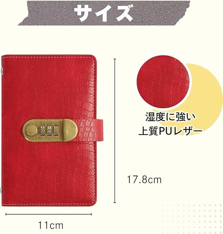 「ダイヤル式3桁ロック付き。手帳タイプのデザイン」本棚に並べたり、引き出しに入れていても違和感のない手帳型デザイン。