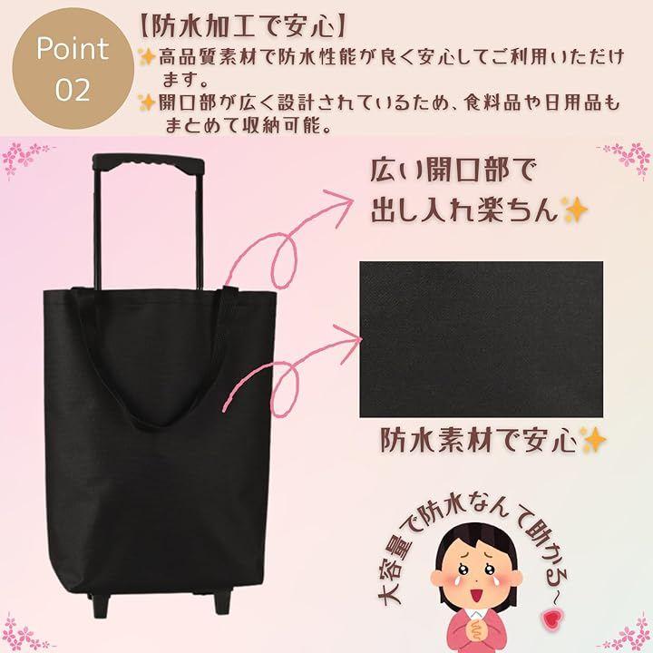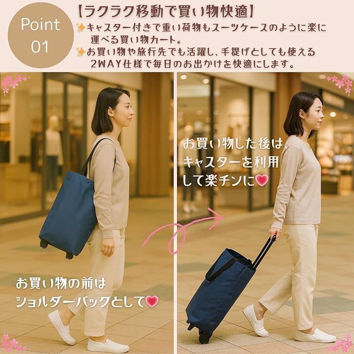 「ラクラク移動で買い物快適」キャスター付きで重い荷物もスーツケースのように楽に運べる買い物カート。