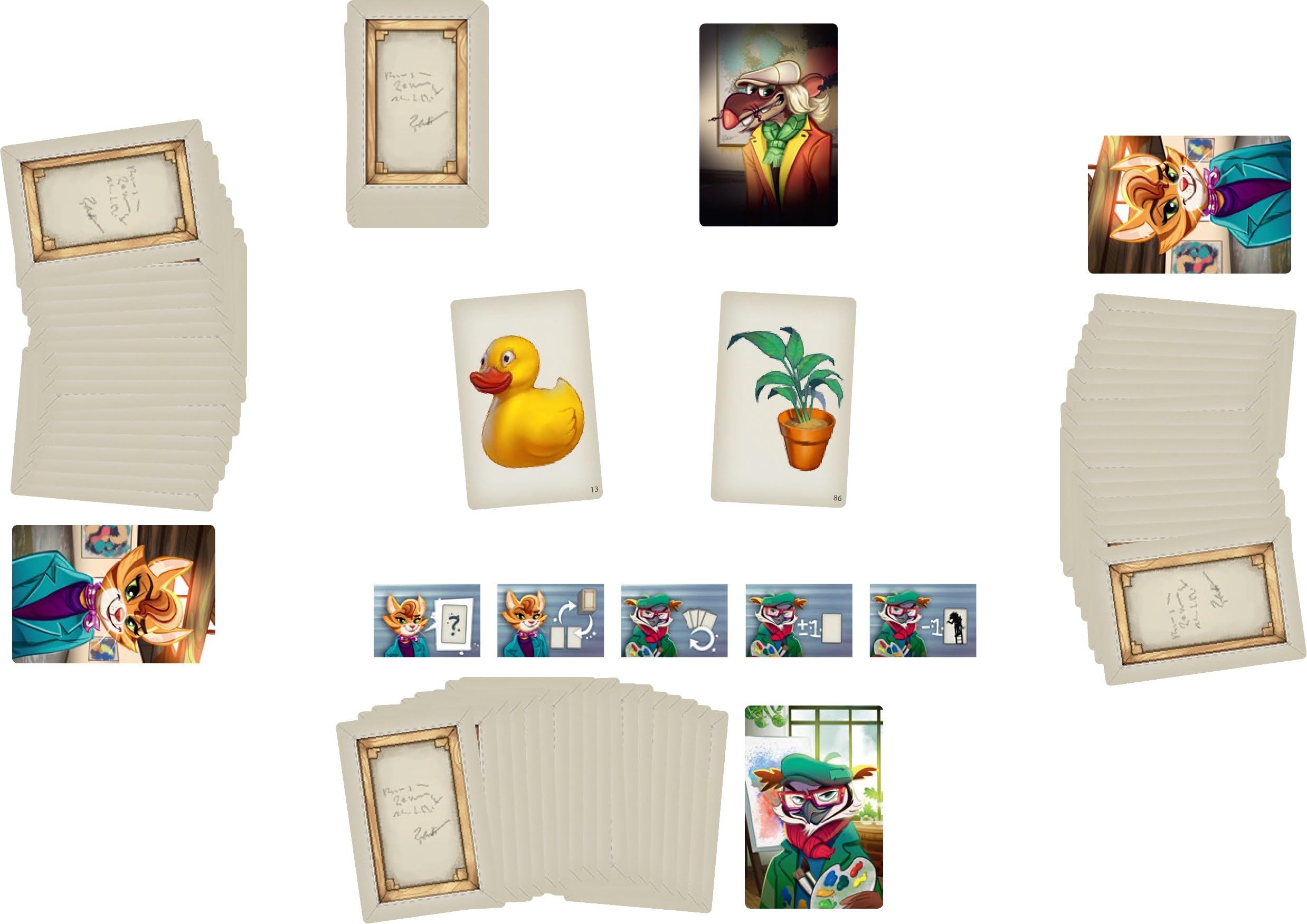 お題にぴったりな絵画カードが無いことがあります。なので、ピッタリすぎる場合は贋作を疑いましょう。画家役がどういう連想でその絵を選んだかを推測しながら選ぶことが楽しいゲームです。