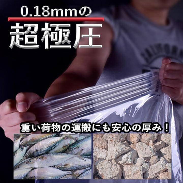 超極厚0.18mmの耐久袋5枚セット。40cmx70cmの大容量で、クーラーに入らない魚も安心して持ち運べます。