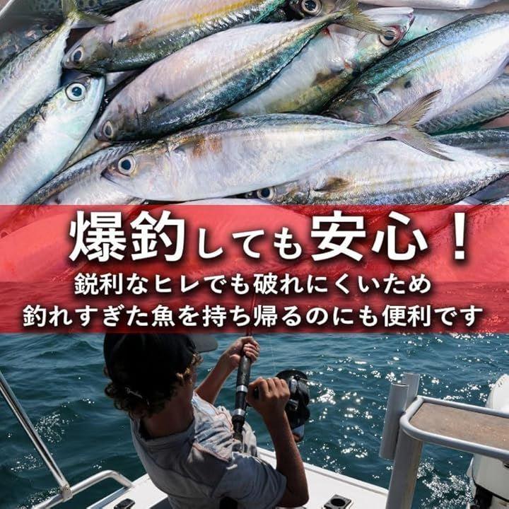 氷を入れて魚を持ち帰ることができ、クーラーに入らない大きな魚も収容可能で、その強度は魚のヒレでも破れない堅牢さを誇ります。