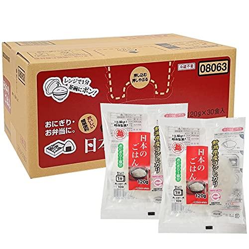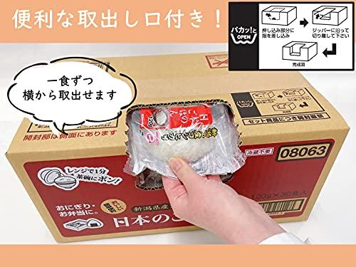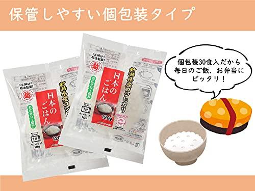 毎日の食卓にピッタリの120g、30食入り個包装タイプの日本のごはんです。 1食ずつ個包装になっているので毎日のごはんやお弁当にもぴったりです。また、ケースから1食ずつ取り出しやすい仕様で、段ボールのままストックしていただくことができます。 ◇新潟県産コシヒカリ100%使用 ◇レンジで1分間チンするだけで、炊きたての味。毎日の食卓でおいしくお召し上がりいただけます。 ◇従来のトレー容器と比べ、プラスチック資材を5分の1に削減し、環境に配慮した商品です。(当社従来品比)