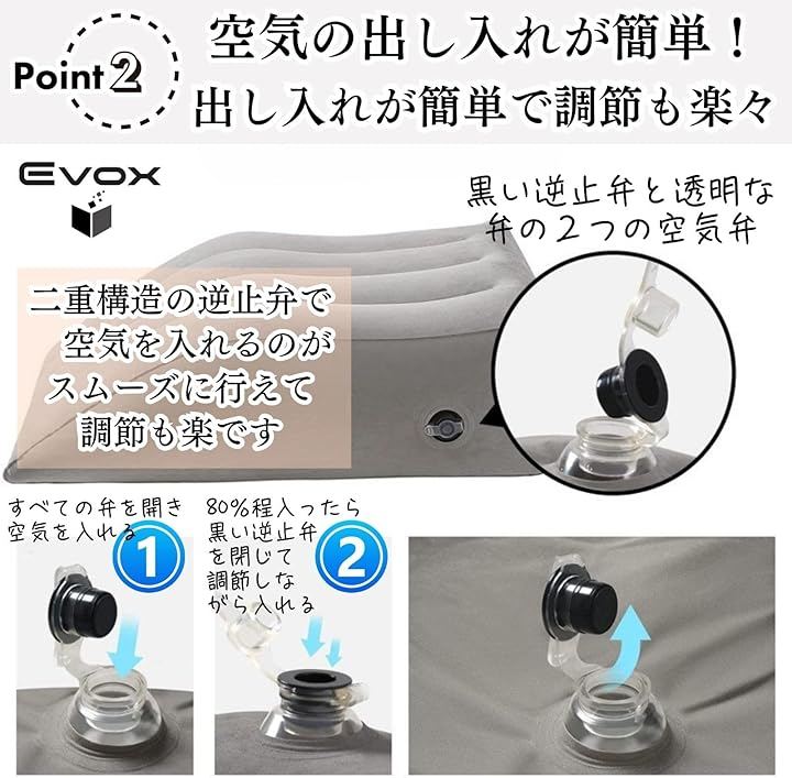 「低反発エアーフットピローで安定感」弾力のある低反発エアーピローが圧力を分散。