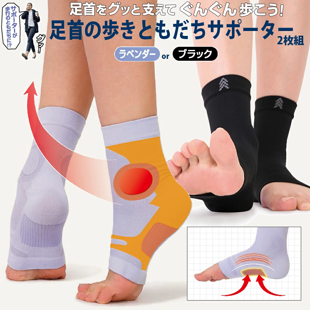 【商品名/型番】足首の歩きともだちサポーター2枚組 ラベンダー / 4580372175873足首の歩きともだちサポーター2枚組 ブラック / 4580372175989