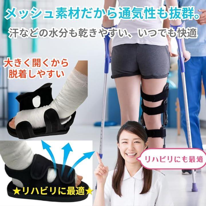 開口部が大きく開くので負傷箇所に負担無く、楽に足の出し入れができます。