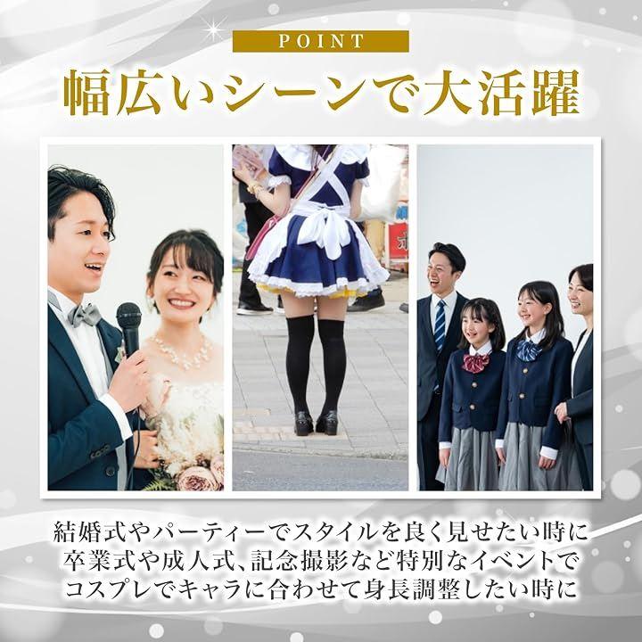 「幅広いシーンで大活躍」結婚式やパーティーでスタイルを良く見せたい時に/卒業式や成人式、記念撮影など特別なイベントで/コスプレでキャラに合わせて身長調整したい時に