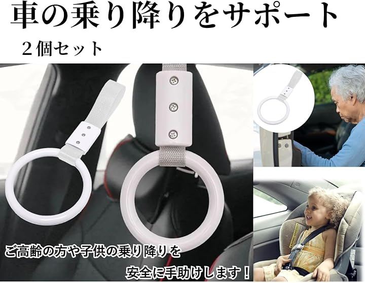 車内に簡単取り付け 車のアシストグリップだけでなく、運転席・助手席・後部座席のヘッドレストにも取り付け可能。
