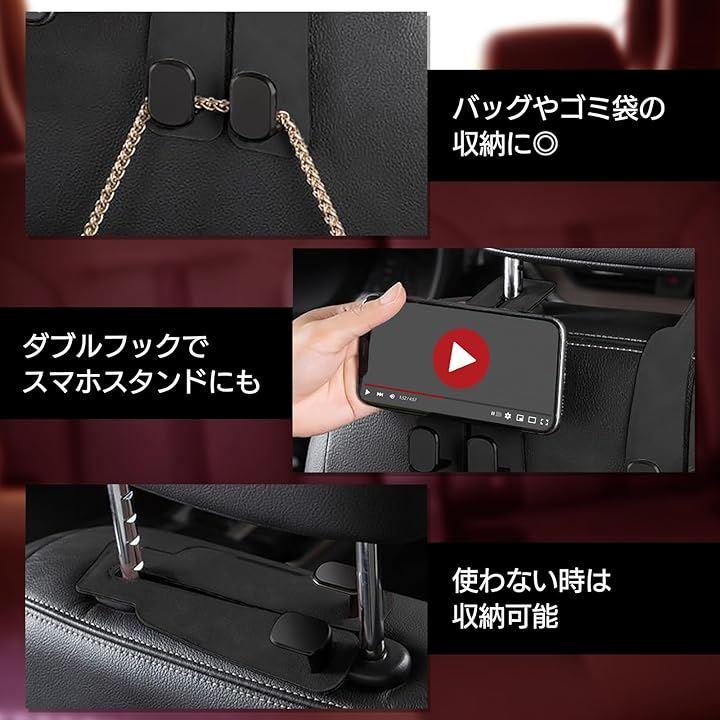 ヘッドレストに取り付けてバッグや荷物を吊り下げることで、車内の散らかりを防ぎます。