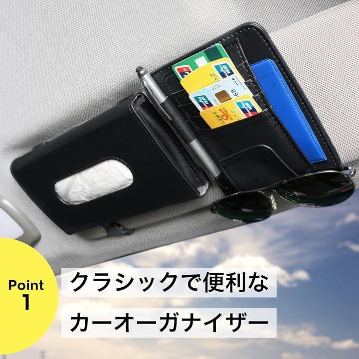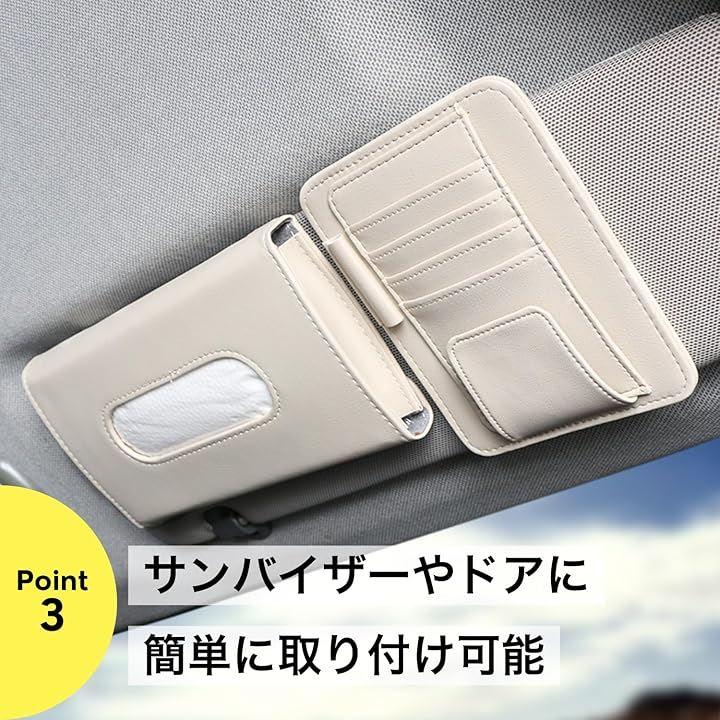 「簡単取り付けで多機能」サンバイザーやドアに簡単に取り付けられ、小物やティッシュの収納に最適です。