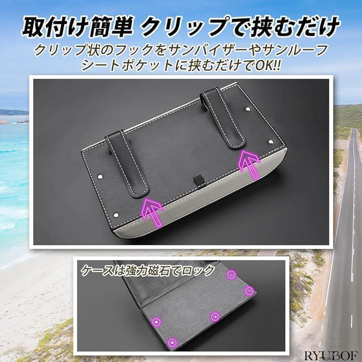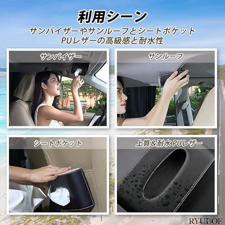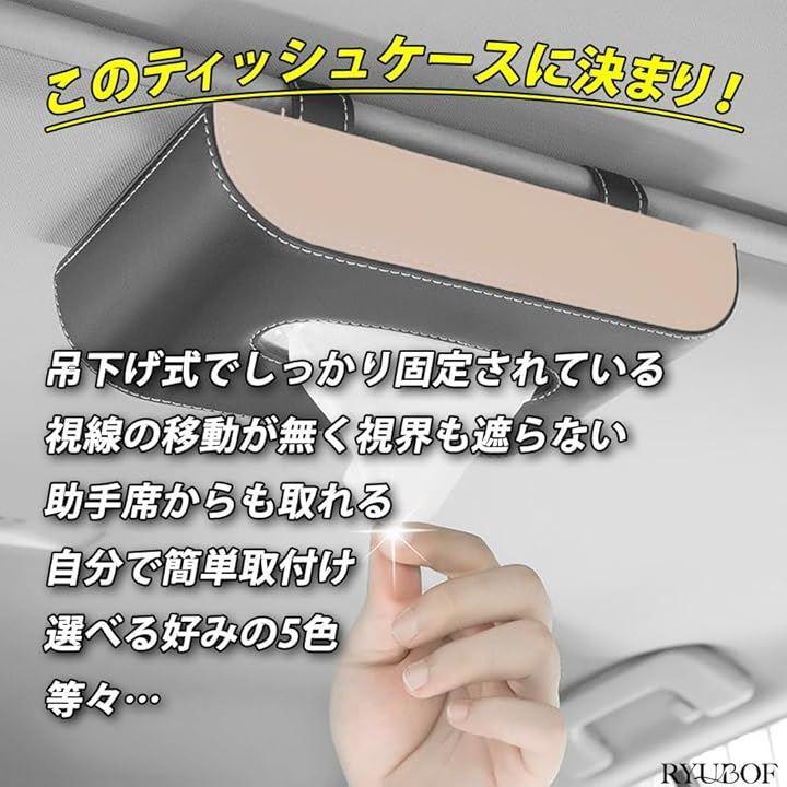 「多様な設置場所」サンバイザー以外にも座席背面など様々な場所への取り付けが可能で、限られた車内スペースを有効活用できる吊り下げ式ティッシュホルダーです。