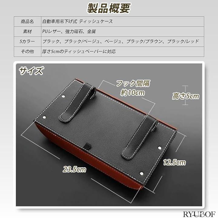 「コンパクト設計」5x12.5x23.5cmのスリムなサイズで車内収納に最適化されており、狭いスペースでも邪魔にならないコンパクトなティッシュボックスホルダーです。