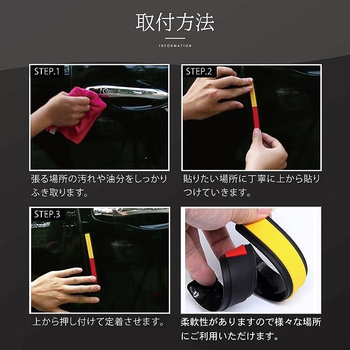 * ( ドアガード ミラーガード ) を貼る際には、事前に貼り付ける部分の、汚れや油分などをしっかり拭き取り、よく乾いたあとにお貼りください。