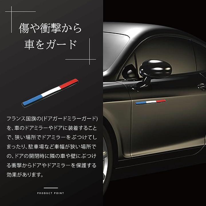 フランス国旗の ( ドアガード ミラーガード )を、車のドアミラーやドアに装着することで、狭い場所でドアミラーをぶつけてしまったり、 駐車場など車幅が狭い場所での、 ドアの開閉時に隣の車や壁にぶつける衝撃からドアやドアミラーを保護してくれます。