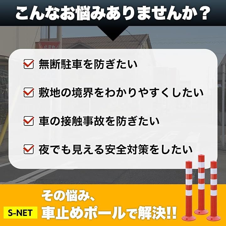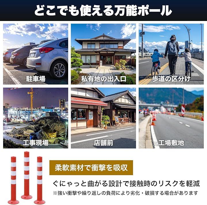 月極駐車場の無断駐車対策や進入禁止エリアの目印、敷地境界の安全ポールとして活躍。