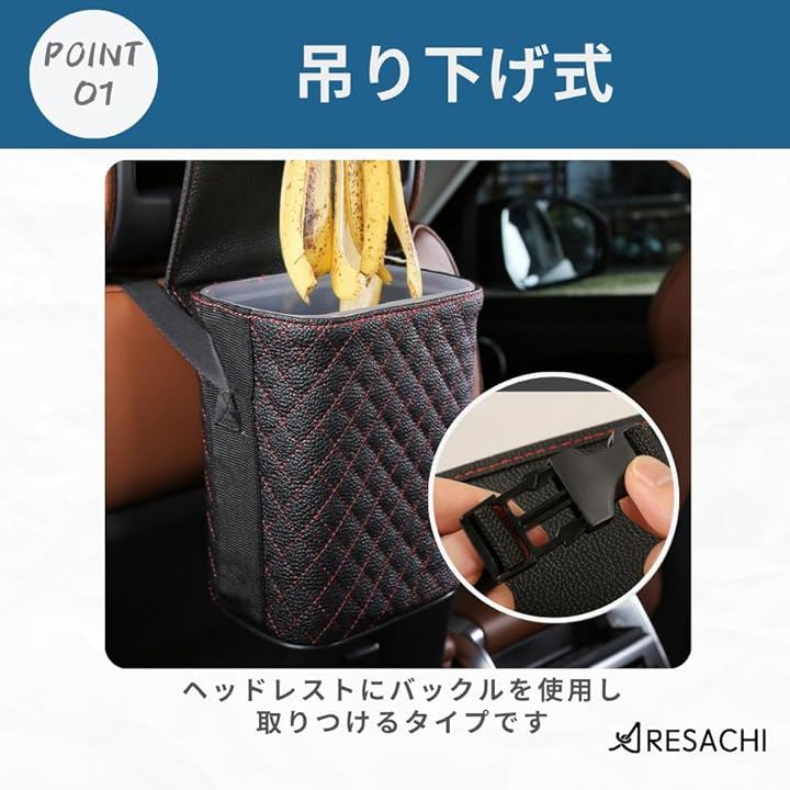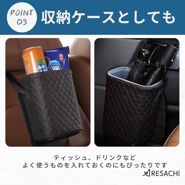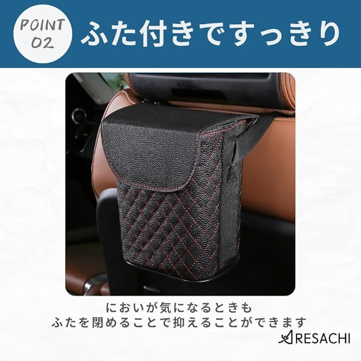 「ふた付きで見た目すっきり」ふたがついているので、中のゴミが見えにくく、車内の見た目もすっきりします。
