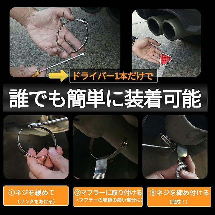・取付金具付きでドライバー1本で、車のマフラーに取付け簡単。