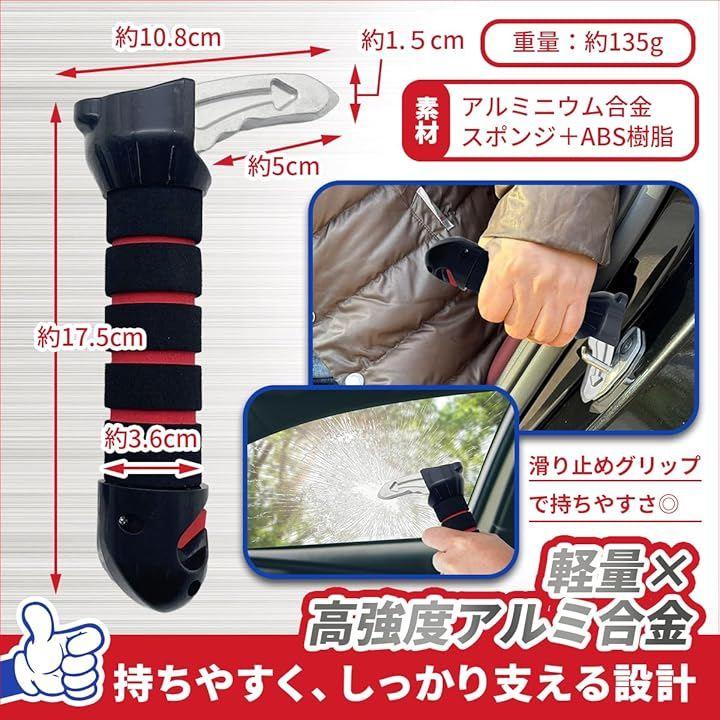 さらにベルトカッターが搭載されており、車内トラブルや緊急時のサバイバルにも対応。
