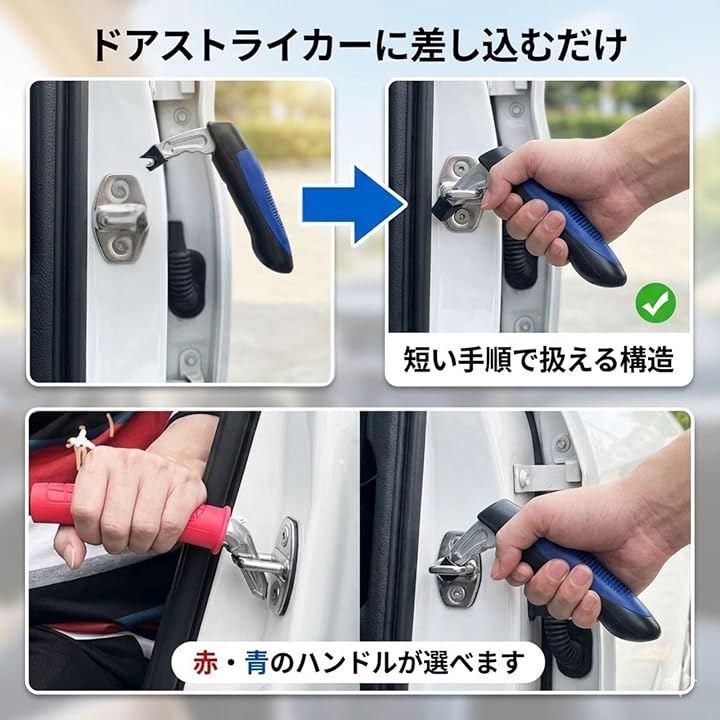 差し込み型は車のドアストライカーに差し込むだけで使用でき、力をかけやすい形状のグリップが体勢を整えやすくしています。