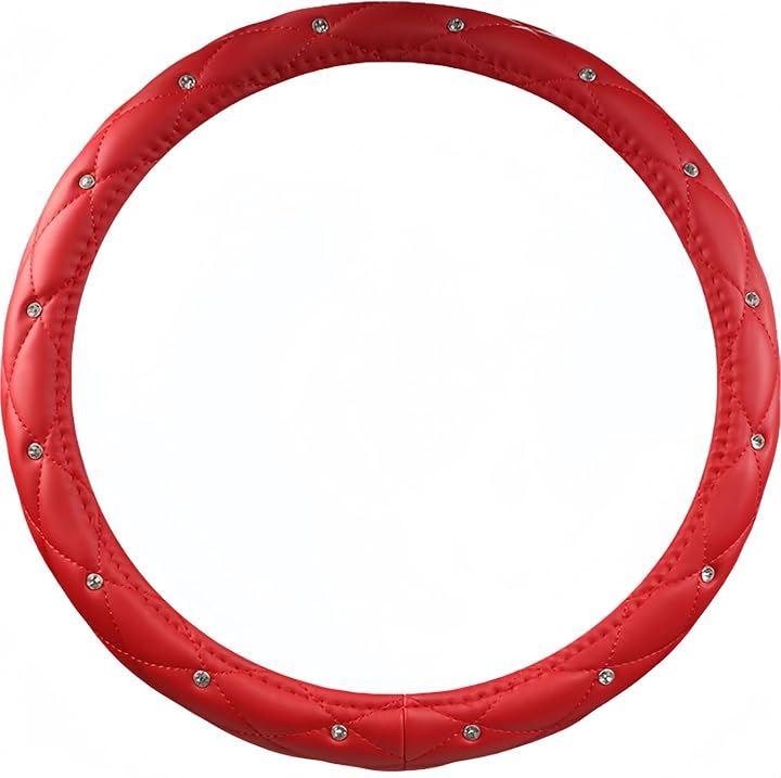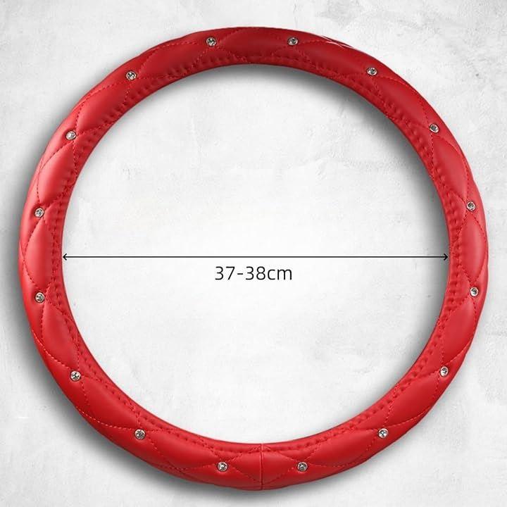 「軽自動車 ハンドルカバーの詳細」このキラキラしたレザー製のハンドルカバー キルティングは、14.5~15インチ(37~38cm)のハンドルに適合する汎用フィットです。