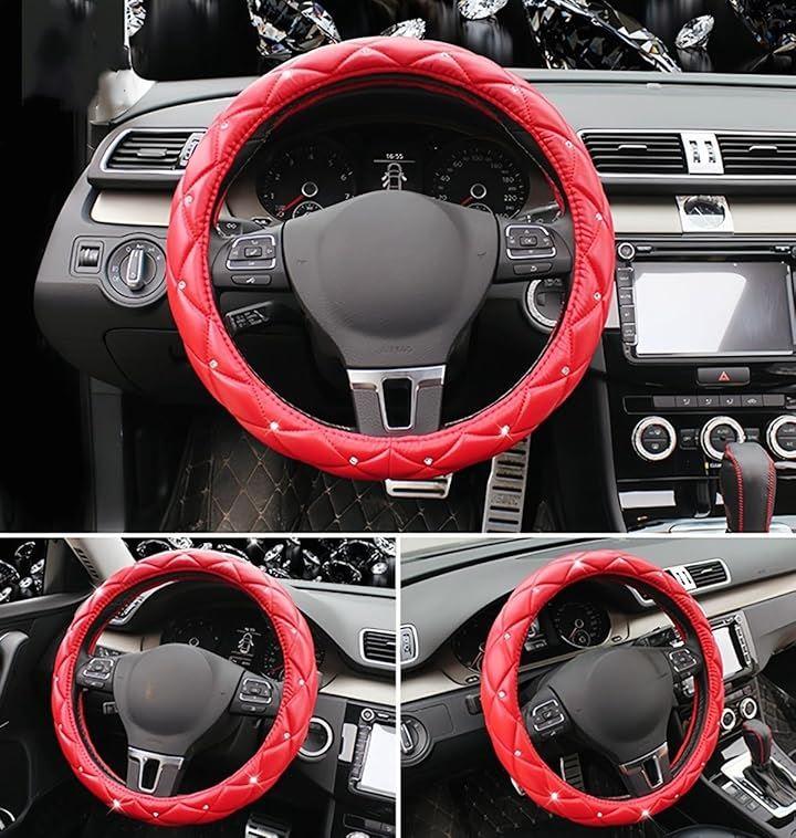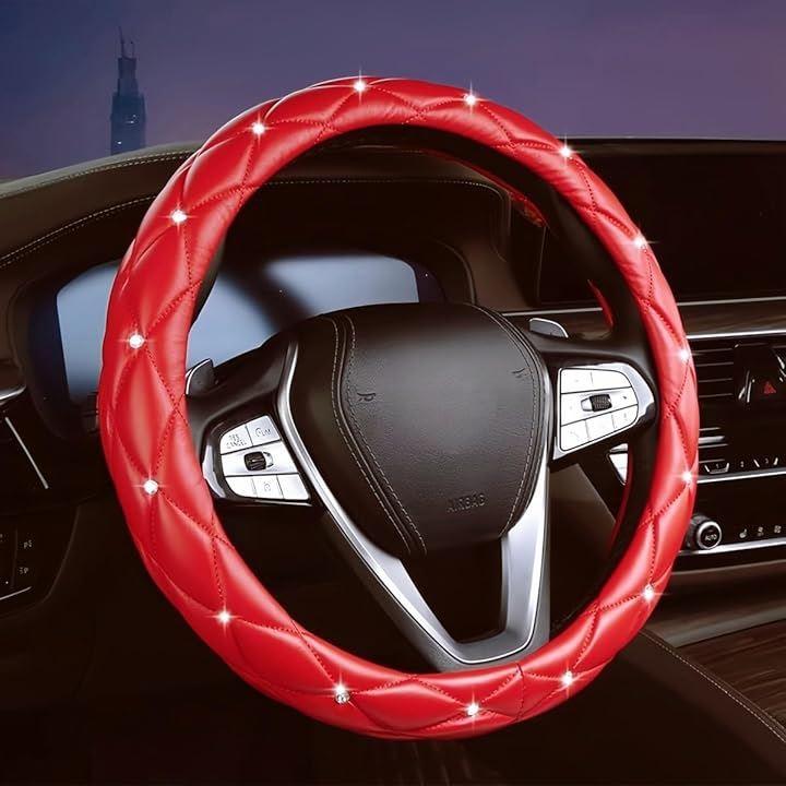 軽自動車ハンドルカバーは、おしゃれで光沢があり、ラインストーンで装飾されたレザーステアリングホイールカバーで、素晴らしく美しく、豪華で快適な運転体験を提供します。