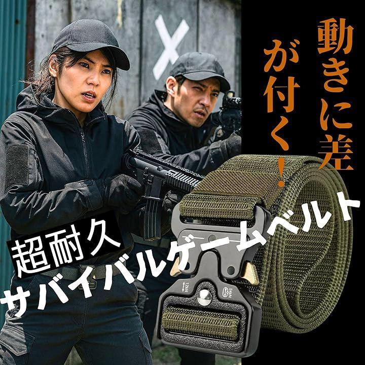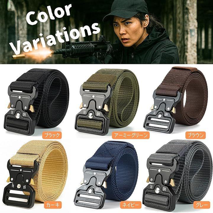 「製品仕様」 ・ベルト全長:約130cm(サイズ調整可能) ・ベルト幅:約3.8cm ・素材:高強度ナイロン/軽量樹脂バックル ・重量:約78g ・対象:メンズ/レディース/ユニセックス 過酷な現場、アウトドア、サバゲーに欠かせない、頼れるタクティカルベルト。